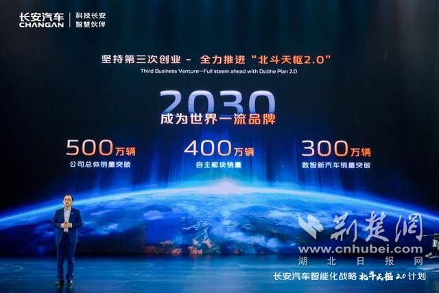 面向未来,长安汽车始终坚持第三次创业——创新创业计划,全力推进“北斗天枢2.0”计划,力争到2030年,公司总体销量突破500万辆,其中,自主板块销量400万辆,数智新汽车销量突破300万辆,成为世界级品牌。