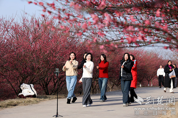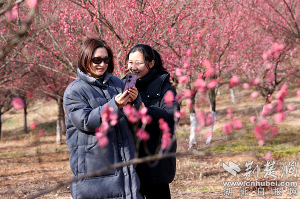 荆楚网(湖北日报网)讯(记者 郭炫龙)2月10日,记者走进荆门市十里牌林场黄山分场,看到近百亩梅花迎风绽放,为早春增添了一抹绚丽的色彩,也为市民带来了一场视觉盛宴。