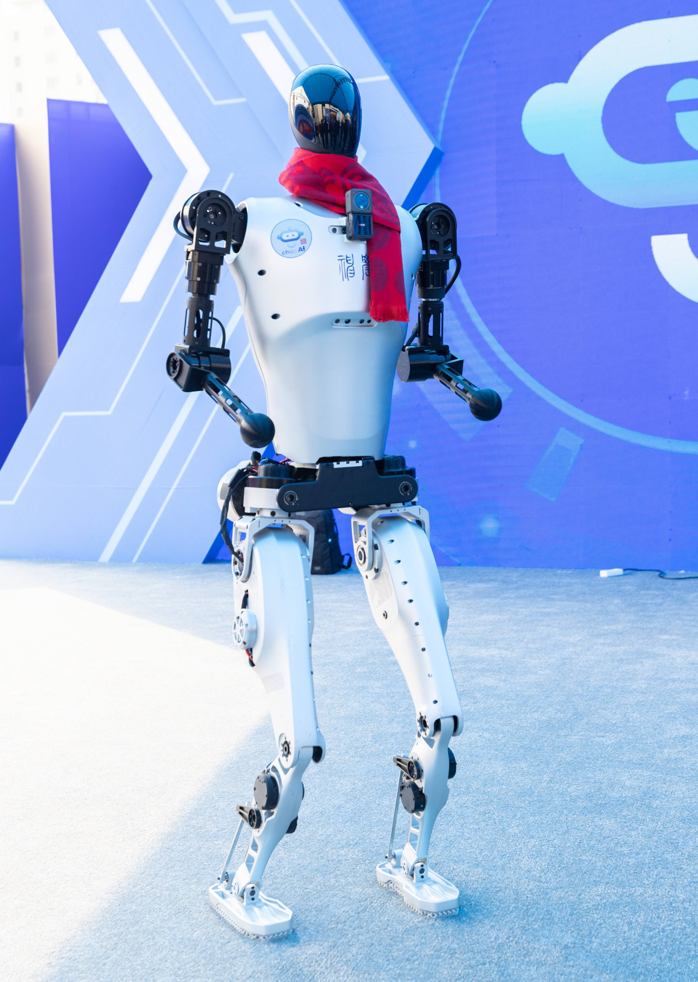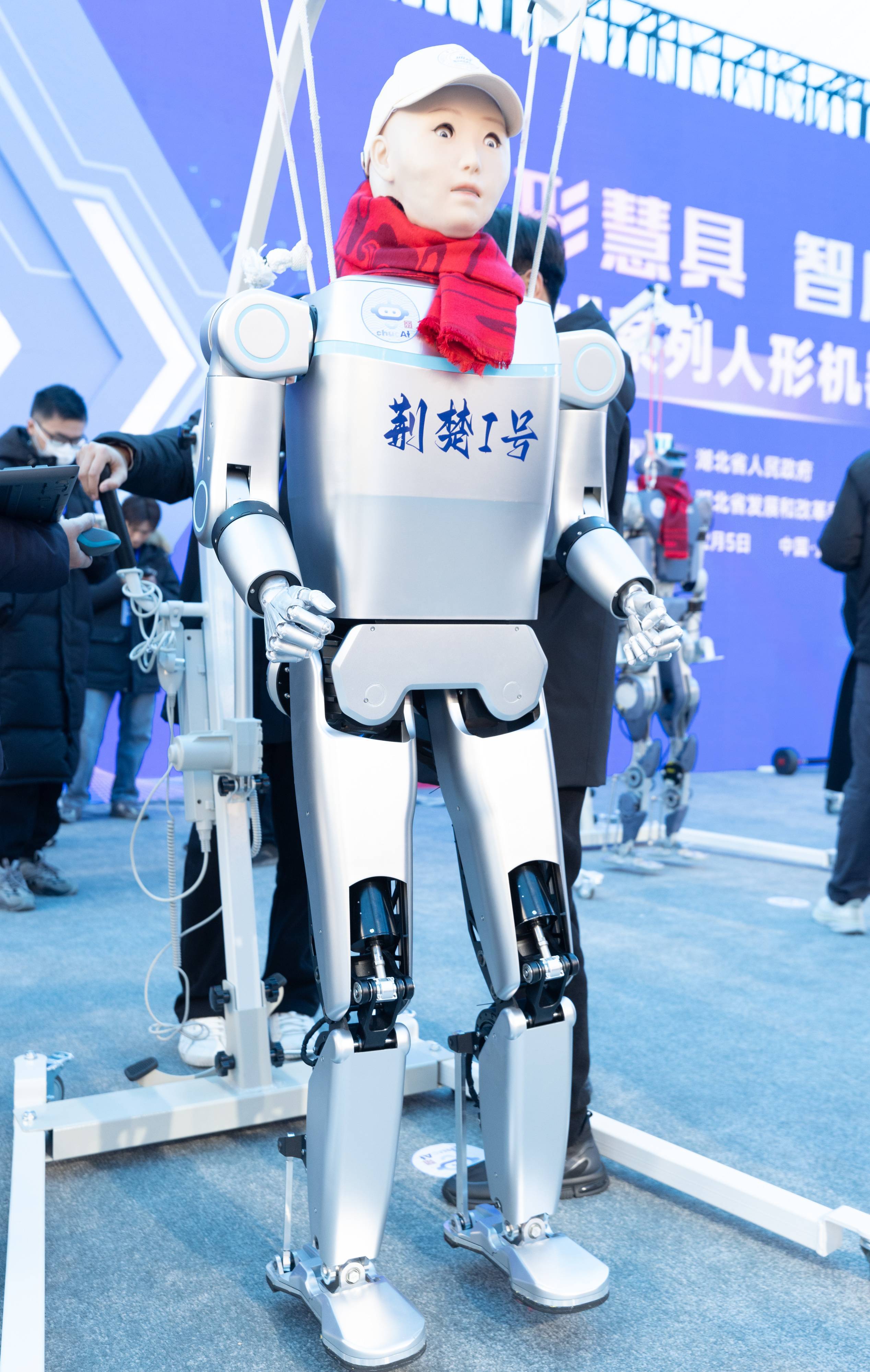2月5日,应用了华威科电子皮肤的“荆楚”机器人亮相武汉洪山广场。(湖北日报全媒记者 柯皓 摄)