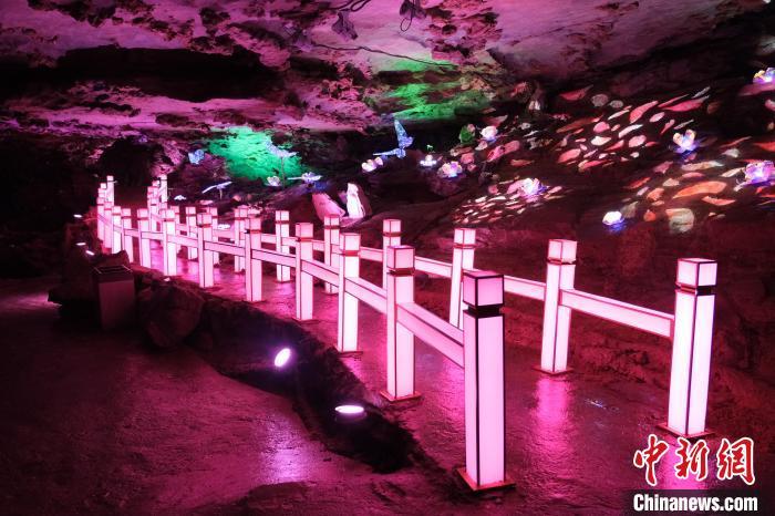 桃源洞项目主理人周伟结合溶洞天然的脉络与姿态,巧妙借助灯光设计与裸眼3D技术,在洞内打造出“星月对话”“云梦仙桥”“花洲仙船”等寓意美好的场景,吸引民众拍照打卡。“春节期间,不少情侣慕名而来,希望在这充满浪漫氛围的场景里沾沾喜气,留下美好的回忆。”周伟介绍。
