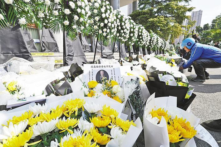 2月10日上午,黄旭华院士遗体送别仪式在武昌殡仪馆举行,送别仪式现场摆满来自全国各地的鲜花。(湖北日报全媒记者 陈迹 摄)
