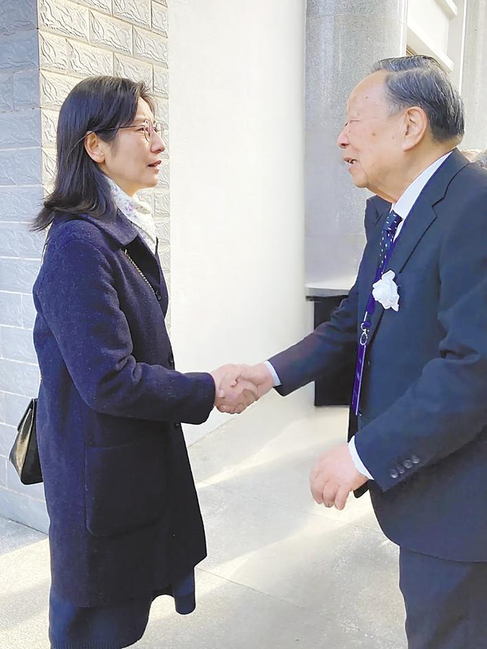 李德仁院士(右)慰问黄旭华院士的女儿黄峻。 (武汉大学供图)