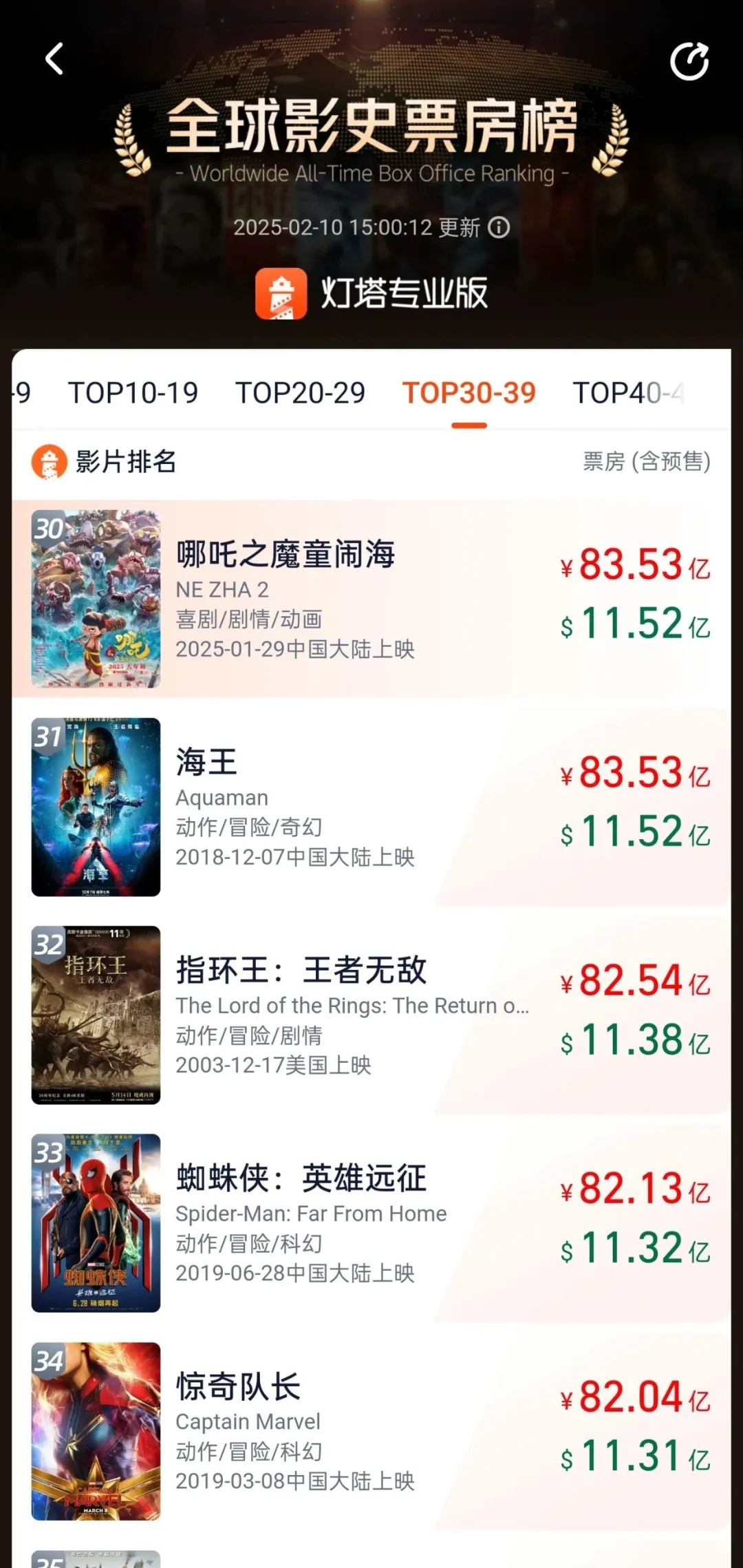 截至10日,影片《哪吒之魔童闹海》总票房(含预售)突破11.52亿美元,进入全球影史票房榜前30名,也是前30名中唯一非好莱坞影片。