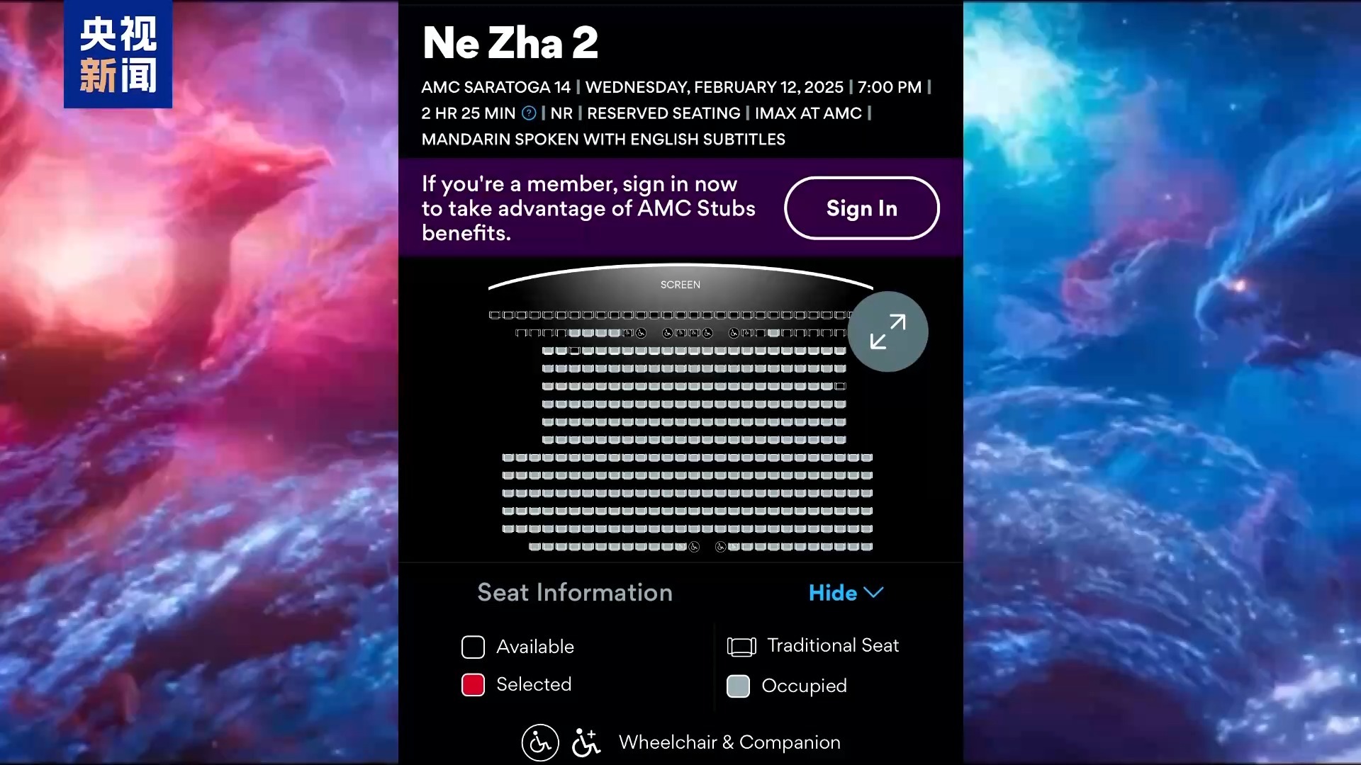 美国多家影院在线售票座位图显示,《哪吒2》的提前点映以及正式上映当日的热门场次已经几乎售罄。