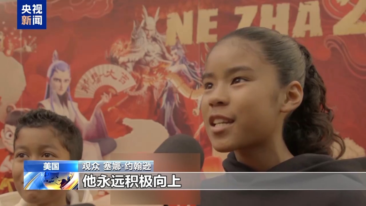 观众 塞娜·约翰逊:我最喜欢主角哪吒,因为他从不放弃,他永远积极向上,他志向远大,勤奋努力,同时又诙谐搞笑。