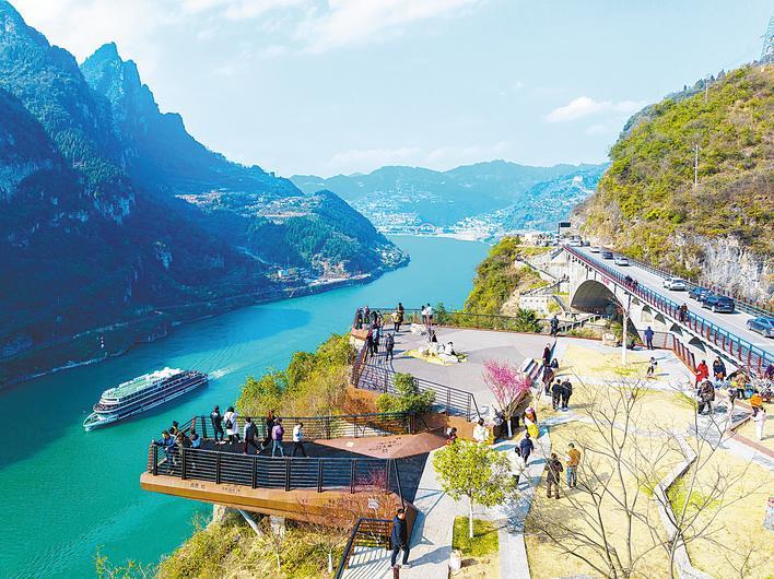 2月4日,宜昌“两坝一峡”旅游持续火爆,游客驻足西陵峡畔,乐享峡江春日好时光。 (视界网 王耿 摄)