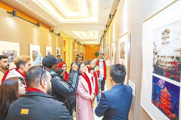 1月30日下午,来自美国、英国、加拿大等30多个国家的游客参观武汉文化长廊。 (湖北日报全媒记者 魏铼 摄)