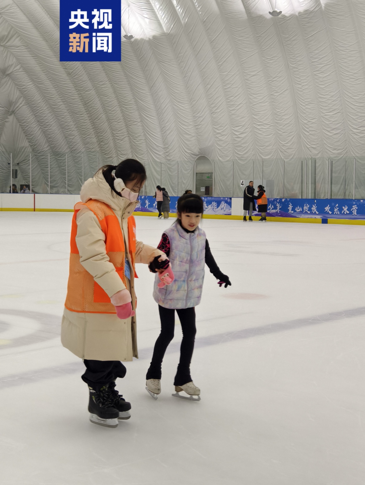 就在记者采访刘钰当天,在冰场里看到了福建厦门来的游学团。在小花滑运动员的帮助下,南方的孩子们换上冰刀鞋,体验冰雪的乐趣。