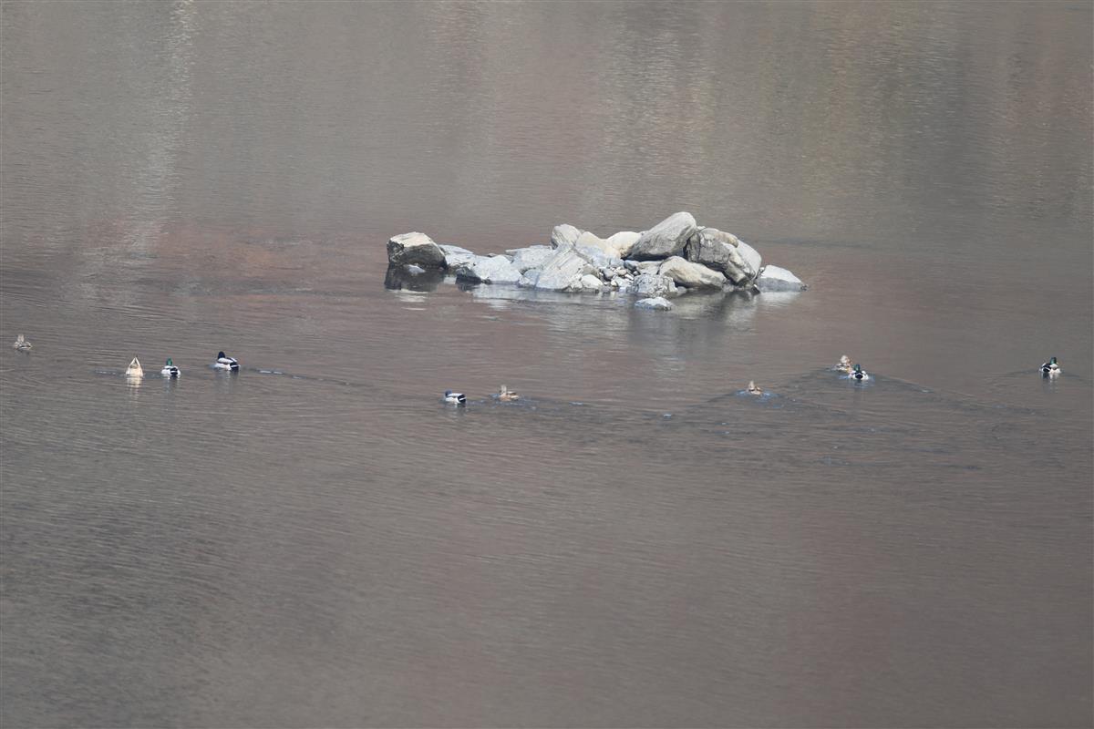 2月10日,湖北竹山县林业局野生动物和森林植物保护站工作人员在该县擂鼓镇鼓锣坪流域河滩上,惊喜地拍摄到成群的野生绿头鸭在此畅游嬉戏的画面。