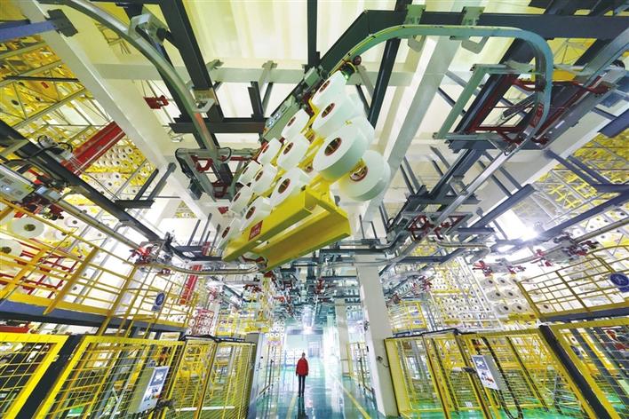 2月11日,湖北三宁化工纺丝车间,运送丝饼的智能小车通过“天轨”在车间里穿梭自如,让这里的高科技氛围感瞬间拉满,仿佛置身电影里的“科幻工厂”。该生产系统采用了国际先进的自动化设备,实现落筒、转盘、检测、包装、入库、出库全流程自动化。目前,车间开启4条POY(高速纺丝)生产线、13条FDY(全拉伸丝)生产线满负荷运行,奋力冲刺首季“开门红”。