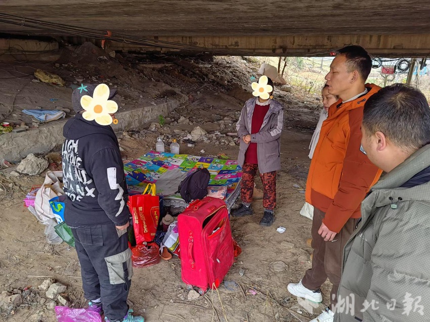 2月12日下午,蕲春县救助站的工作人员如往常一样,在街头巷尾开展巡逻工作。当他们行至西河驿大桥时发现桥洞下有人生活的痕迹。经过一番搜寻,找到了在此居住的张三(化名)夫妇。工作人员迅速取来泡面、矿泉水、棉衣等生活物资,为夫妇俩送上急需的关怀。紧接着,工作人员又耐心地劝说,最终成功将他们送回了家。