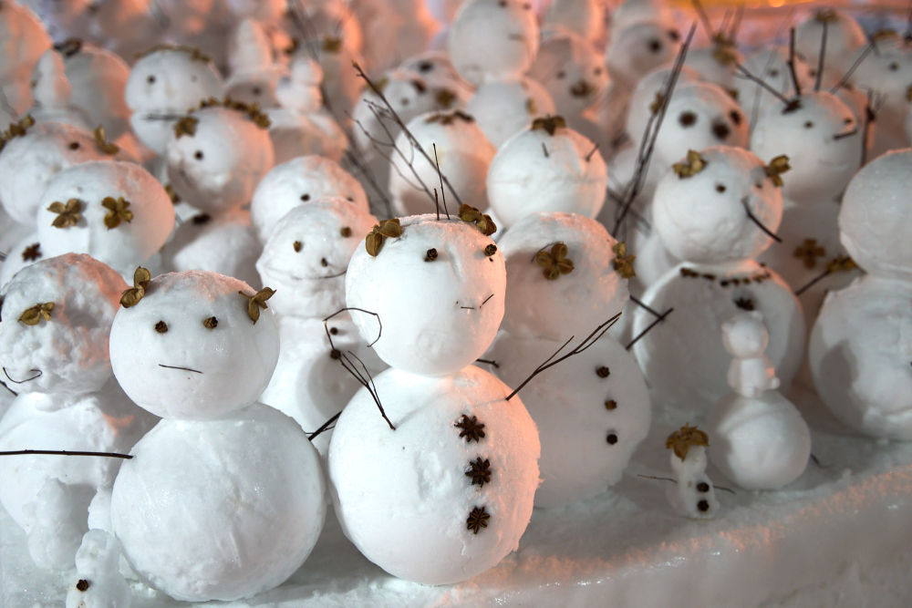 这是2023年2月6日在日本札幌冰雪节上拍摄的雪人。新华社记者张笑宇摄