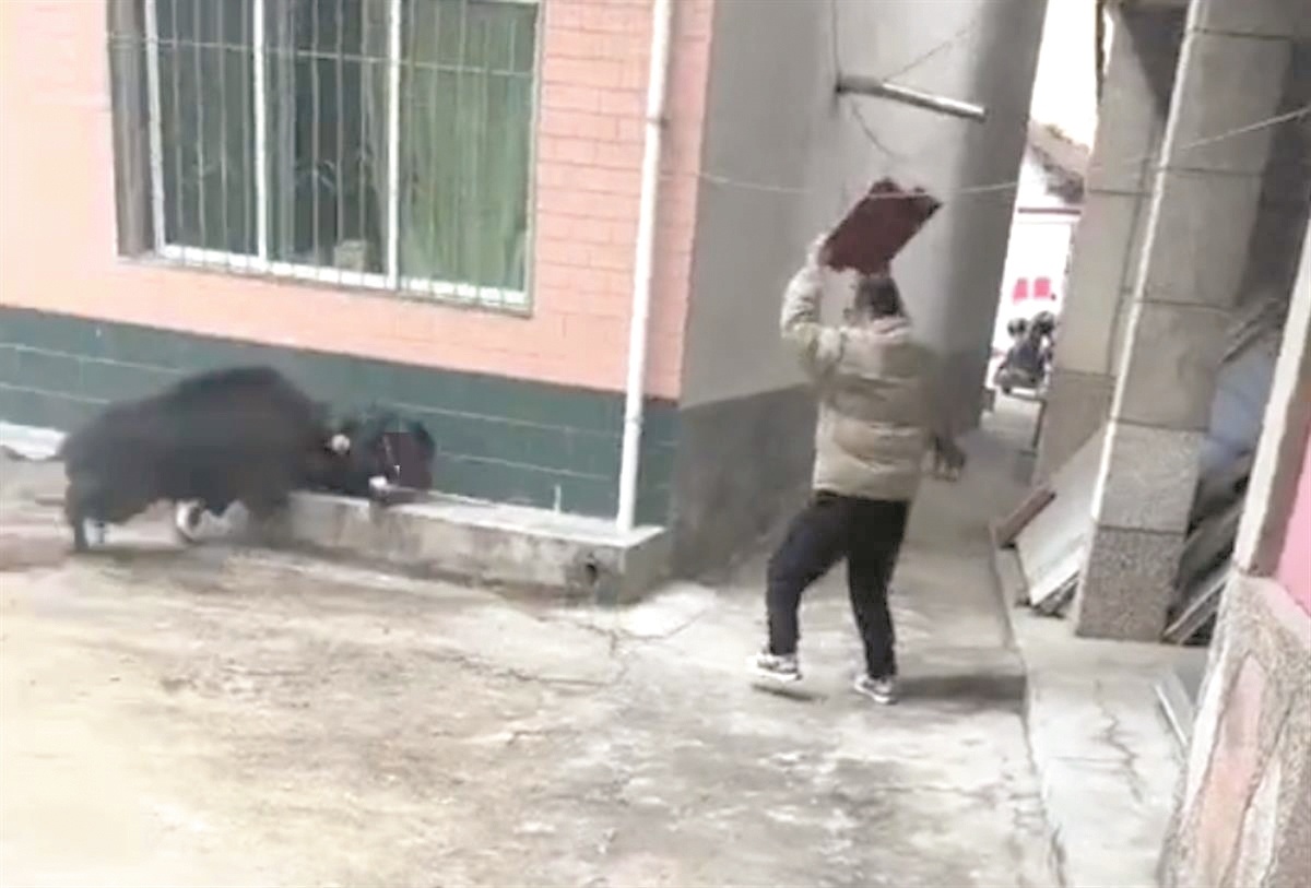 楚天都市报极目新闻讯(记者舒隆焕)2月12日,陕西汉中勉县一女子被野猪袭击的视频引发关注。视频显示,一头野猪进村后冲向民房,撕咬一名女子。女子拿着棍子打野猪,却被扑倒在地上遭撕咬,旁边男子也在驱赶野猪。