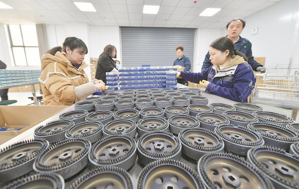 2月8日,在位于襄州区的湖北妙壳新材料科技有限公司,工人正在生产线上生产。春节过后,企业全面复工复产。