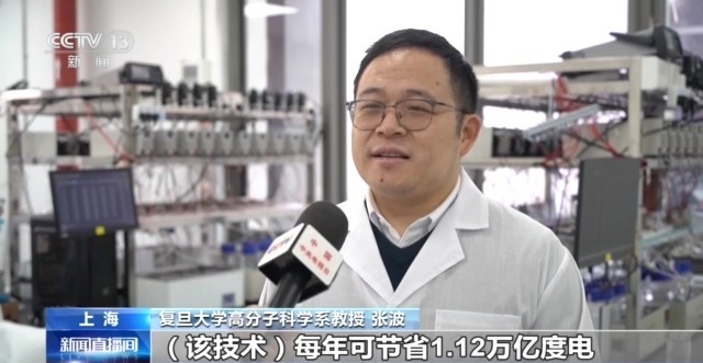 复旦大学高分子科学系教授 张波:如果按照全球2050年1亿吨绿氢的需求来计算,该技术每年可节省1.12万亿度电。