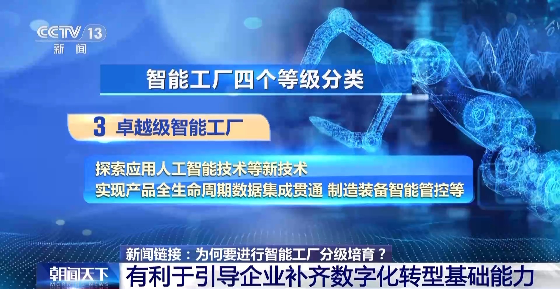 工业和信息化部赛迪研究院产业政策研究所所长 王昊:通过开展智能工厂的梯度培育,有助于不同类型的企业扎实推进智能制造。分层分级系统性规模化推进智能工厂建设,加速新一代信息技术和先进制造业深度融合,从而带动形成一批高水平的智能制造供给体系。