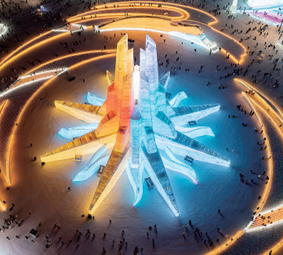 从材料到形式、内容、传播等多方位的创新表明,当下的冰灯正以一种全新姿态走向大众。它承载着老一辈冰灯人的梦想,展现着冰雪文化的独特魅力,更拥抱着注重多元化与个性化、互动性与体验性的新生活,在冰雪世界里熠熠生辉,诉说着北国的传奇与浪漫。