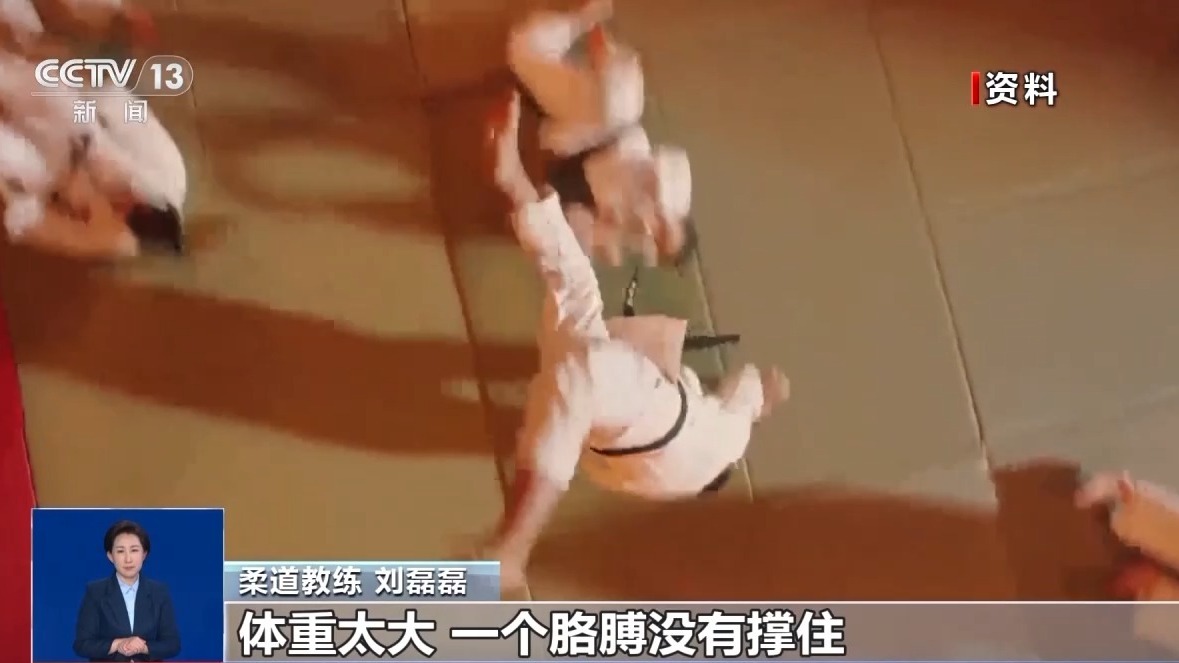 柔道教练 刘磊磊:我是被刘霞摔到了头顶,准备往下掉的时候,我自己用手撑了一下垫子。因为体重太大,一个胳膊没有撑住,导致了我的右肩韧带,基本上拉断了。