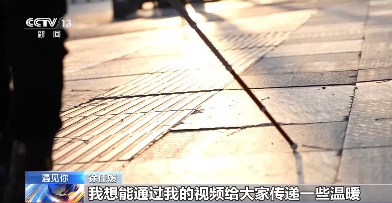 徐佳媛:我想记录下我的生活,眼前虽然看不到任何东西,虽然是黑暗的,是虚无的,但是心灵是光明的,我想能通过我的视频给大家传递一些温暖,想让更多的人了解我们这个群体。