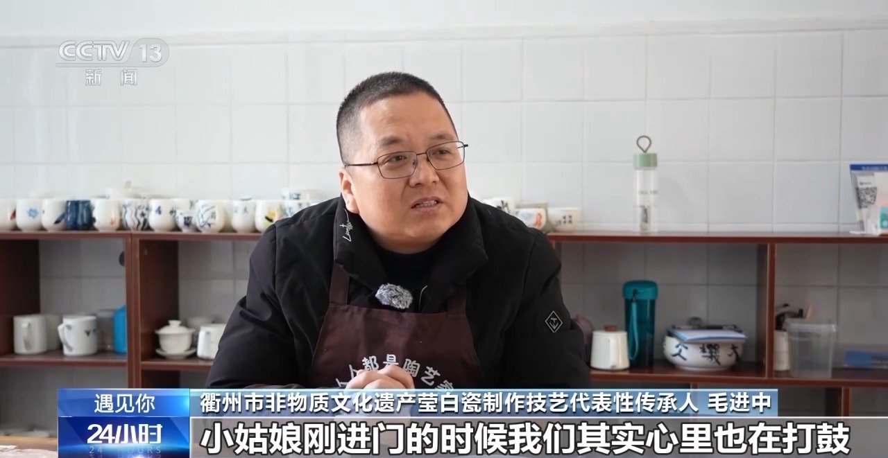 衢州市非物质文化遗产莹白瓷制作技艺代表性传承人 毛进中:小姑娘刚进门的时候我们其实心里也在打鼓,到底能不能完成一个作品,但是从接触下来,第一次失败到第二次从头再来,一度我们想去帮忙,着急想伸手去拉一把,但是我们看到了小姑娘又非常努力,非常认真地完成。虽然她视觉有障碍,但是我们看到了一个非常自信、乐观、阳光的一个小姑娘。