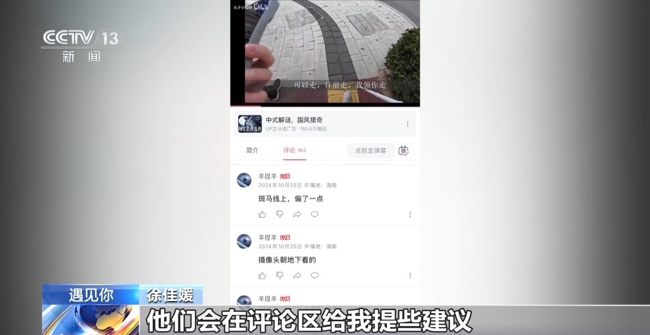 徐佳媛:还有一些让我比较感动的评论说“看到盲道上有车子给它挪开了”我就觉得我的视频是有意义的,能让更多人来帮助这个群体,帮助我们的人也会很开心。我觉得这样就是互相奔赴的一种力量,就像清晨那束阳光一样,能照亮大家也能照亮我自己。