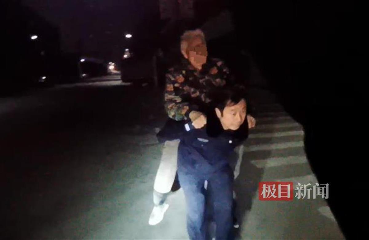 没有半点犹豫,民警周红斌立即弯腰背上老人前往镇上的宾馆。虽然老人迷路的地方距离宾馆的距离不算太远,但周红斌自身因为腰部疾病,每一步都走得不容易。最终,在出警民警、辅警的共同努力下,成功将老人送到了镇上的一处宾馆。