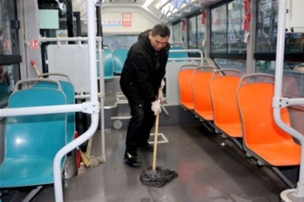 7时08分,85路车到达金宁小区,菜农纷纷下车,相互帮忙递送菜篮。曾祥伟也下车搭手,直到将所有菜篮卸完。菜农把菜篮装上小拖车,匆匆走向附近菜市场。曾祥伟立即开始打扫车厢,“让其他乘客有个好环境。”