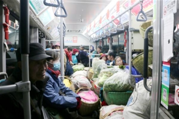 曾祥伟坦言,头两趟车因菜农较多,每站停靠时间延长,平时50分钟的路线要多花十几分钟。菜篮子的增多,也让车厢变得拥挤,车内卫生清扫次数也跟着变多。虽然如此,但他说:“值得!因为既让城里人吃上新鲜菜,又帮助菜农增收了。”