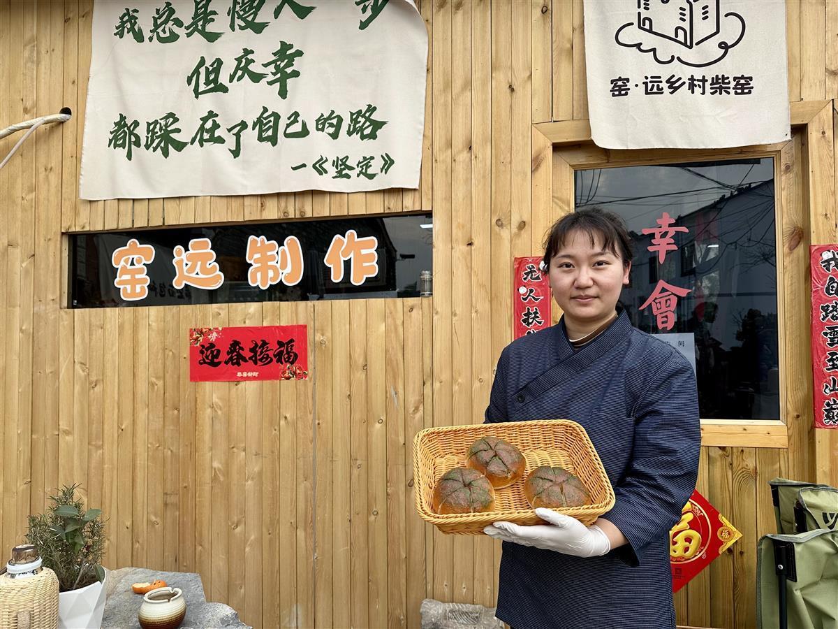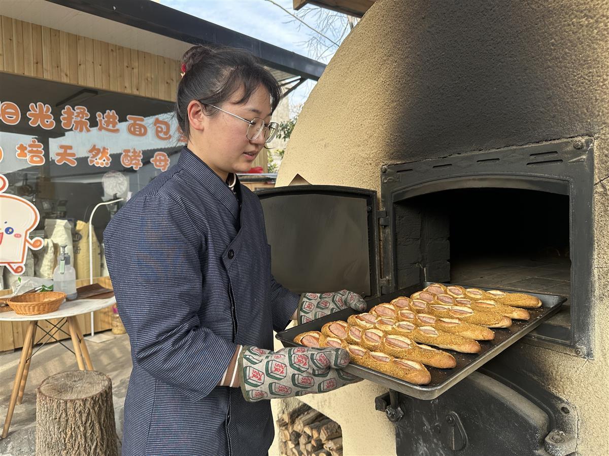 “我们的面包主打纯天然,不含任何添加剂,用柴火窖烘烤出来,还带有一种独特的烟熏感,很受市民欢迎。”葛悦琪端出的一大盘面包,外酥里柔,香气扑鼻,瞬间被游客“抢光”。