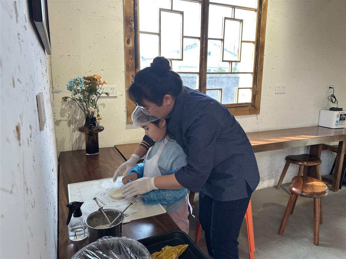 不仅窖烤面包受欢迎,葛悦琪开设的烘焙课也是爆火,每周末开三次课,每次最多限8人,也是需要“抢购”的。记者采访时,葛悦琪正在手把手教5岁多的来宝制作红豆馅面包。“一个小时98元,可以烤制3个面包,让女儿体验一下制作的乐趣,感觉很不错。”来宝的妈妈笑着说:“物有所值!”