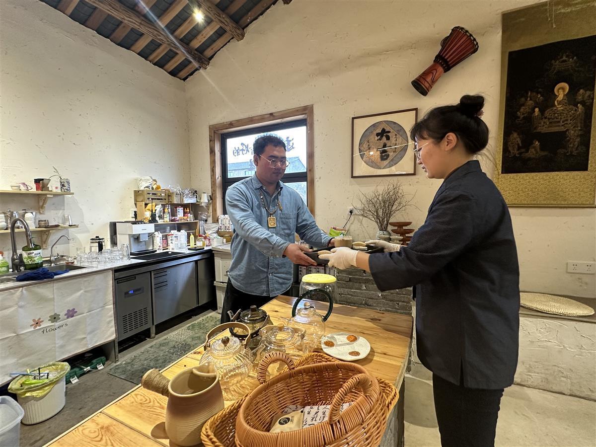 吹着春风,晒着太阳,喝着咖啡,尝一口新鲜出炉的窑烤面包,一扫疲惫的身心。在葛悦琪的诗意小院,58岁的刘兰带着退休的姐妹,特意来到面包房打卡。“乡村里空气清新,到这样别致的小院里坐一坐,顿时感觉神清气爽。”