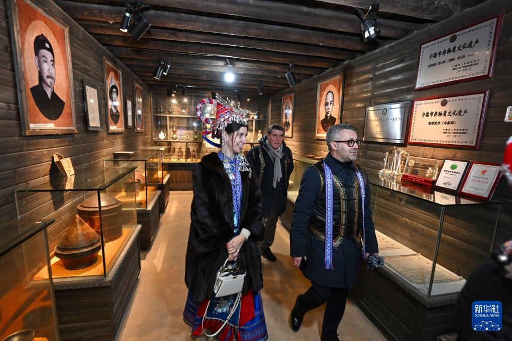 2月20日,意大利客人在霞浦县溪南镇半月里村参观畲族民俗馆。