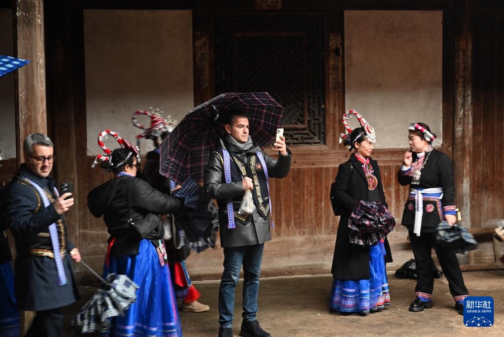 2月20日,意大利客人在参观霞浦县溪南镇半月里村畲族民居。