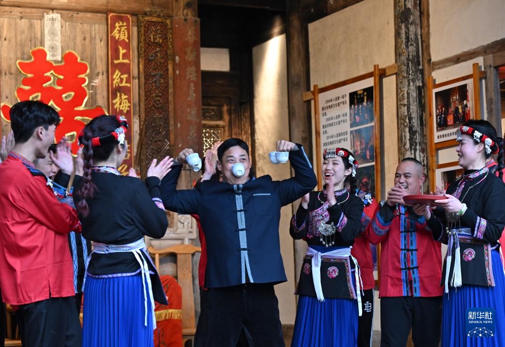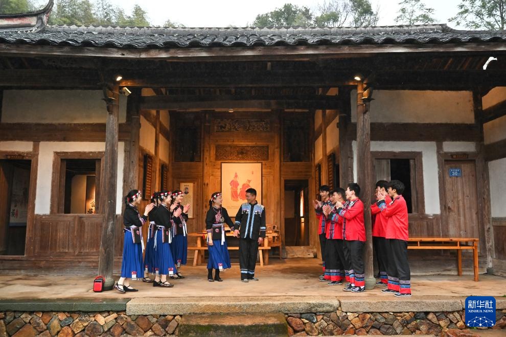 2月20日,霞浦县溪南镇半月里村村民为前来参观的意大利客人表演畲族婚俗。