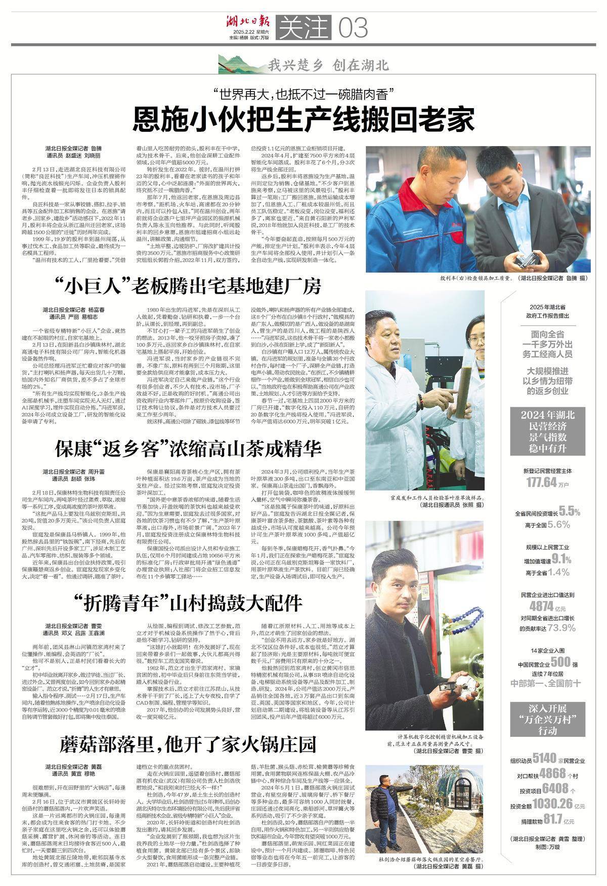 他毅然回到范家湾村,创立黄冈市倍思特精密机械有限公司,从事SR喷涂自动化设备、电梯驱动系统设备等产品及配件加工、制造、研发。2024年,公司产值达2000万元,产品销往全国各地,近3万套产品出口到东南亚、英国、美国等国家和地区。今年,公司计划启动第二期建设,将组装设备等从江苏引回团风,投产后年产值将超过6000万元。
