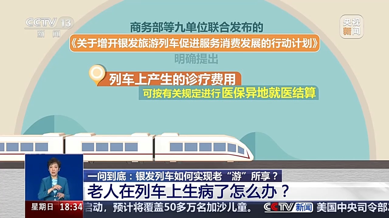 日前,商务部等九单位联合发布的增开银发旅游列车的行动计划明确提出,列车上产生的诊疗费用可按有关规定进行医保异地就医结算,为银发游客在旅行中就医提供了保障。