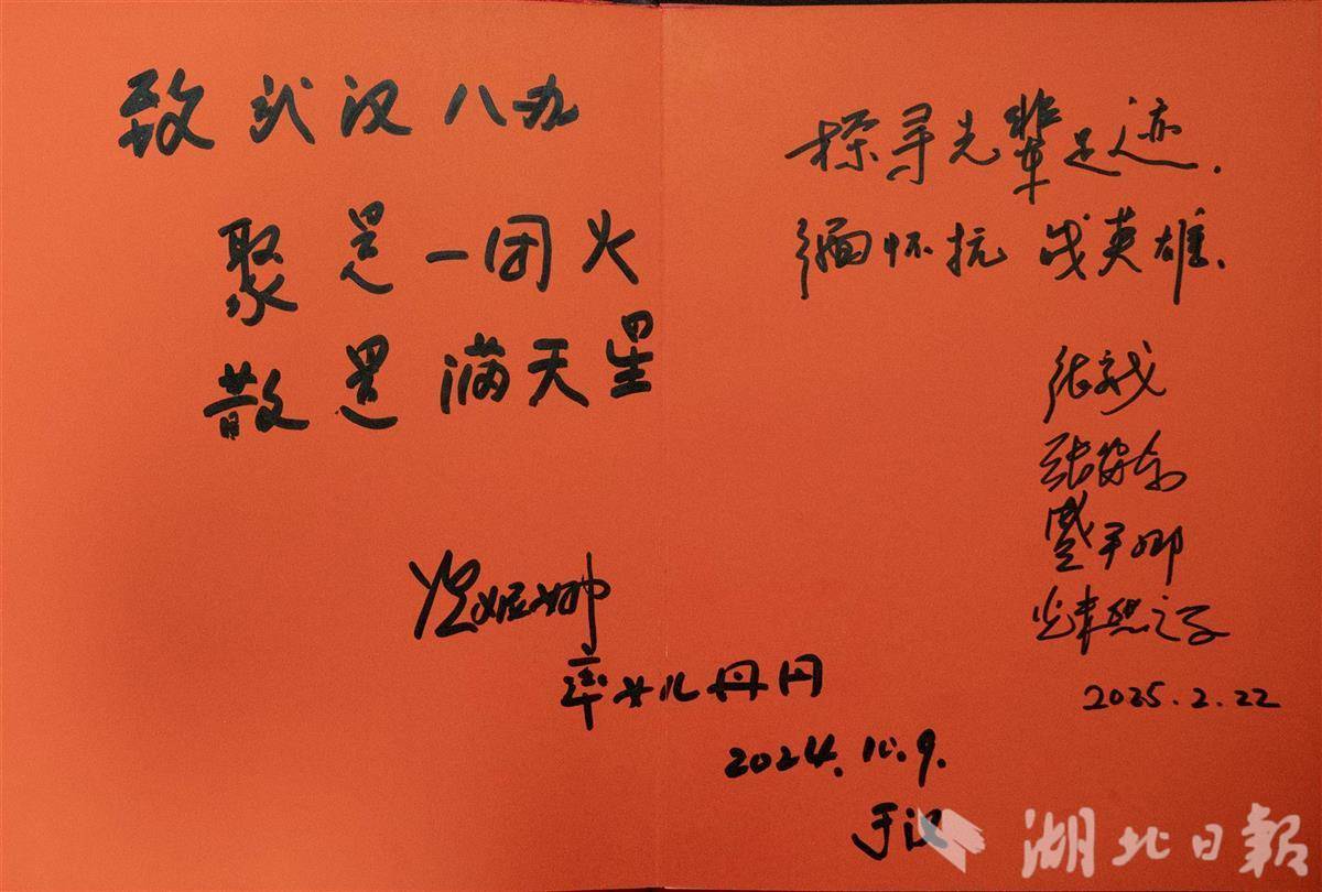 光未然之子张安戈、张安东写下“探寻先辈足迹,缅怀抗战英雄”;冼星海之女冼妮娜留言“聚是一团火,散是满天星”。这是四个多月前留下的。