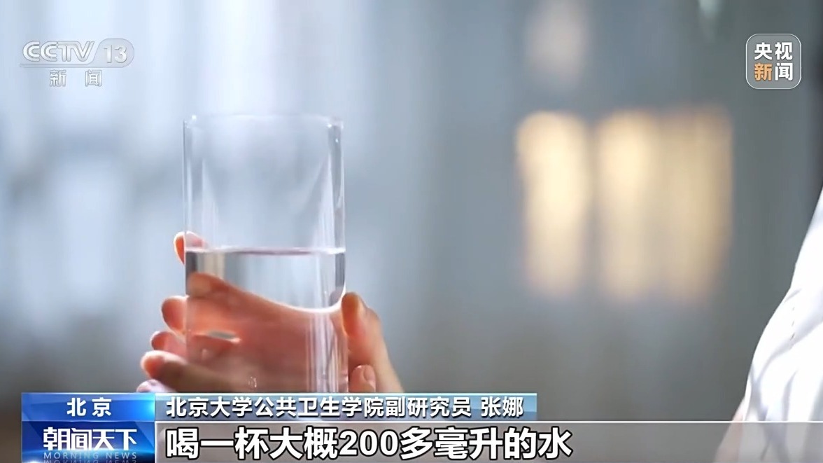 北京大学公共卫生学院副研究员 张娜:很多人都会觉得我口渴了再喝水,就来得及。实际上等到口渴了再喝水的时候,我们机体已经对口渴和缺水的状态自己在进行一个比较费劲的调节,尿液的渗透压已经开始升高,所以其实喝水建议要维持一个主动规律的饮水方式,比如我们可以每隔两个小时,喝一杯大概200多毫升的水。