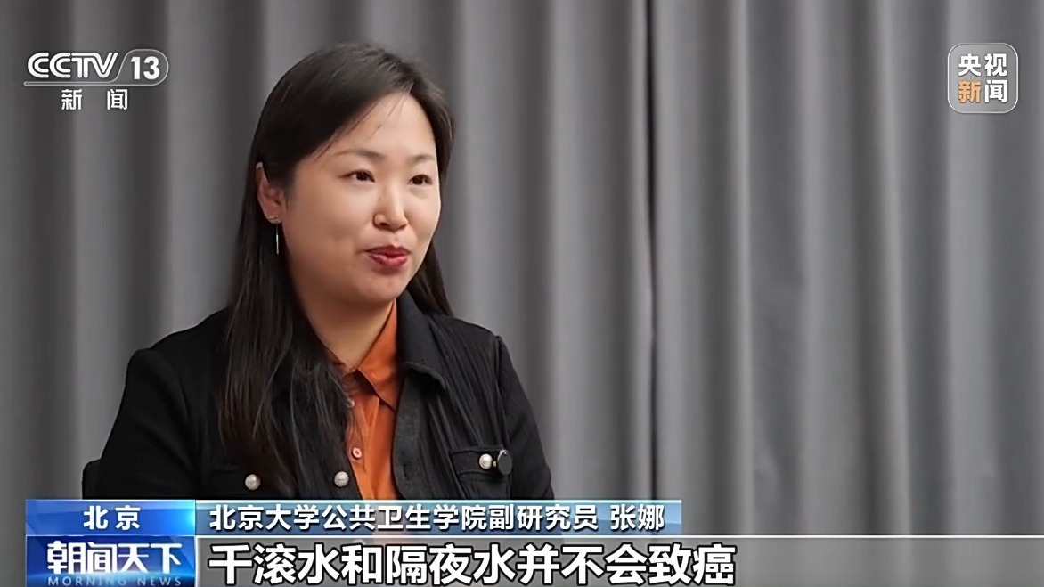 北京大学公共卫生学院副研究员 张娜:千滚水和隔夜水并不会致癌。这两种水其实大家关注的点,主要就是在于它里面含有的亚硝酸盐的含量,但是其实任何一种质变,都是有一个充足的量变才会引发质变。随着煮沸次数的增加,以及放置时间的增加,它的亚硝酸盐的含量确确实实会增加,但是增加的量并不会让我们引起恐慌,或者是对健康造成多么大的一个风险。