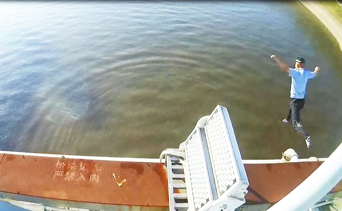 韩靖跳江救人瞬间 硚口警方供图
