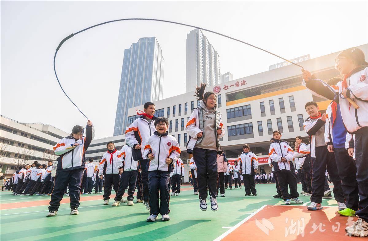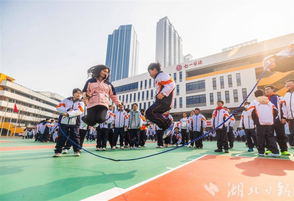武汉中小学校积极打造体育特色大课间,2025春季学期,多所学校将大课间延长至40分钟,开展足球、篮球、跳绳、跑操等多样化活动,提升学生体质素养,助力学生健康快乐成长。(湖北日报全媒记者 薛婷 摄)