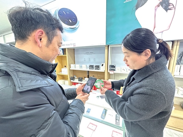 “我打算给老人买一部手机,能接打电话、发微信,刷短视频就行 。 ”2月19日下午,在三堰武商家电卖场,在店员的推荐下,一位市民现场挑选了一部1499元的手机,领消费券享受购机补贴后,省了200多元 。