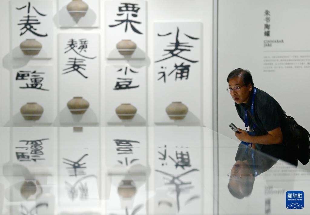 观众在秦始皇帝陵博物院观看“千古一帝的地下王国——秦始皇陵考古发现展”上展出的兵马俑(2024年9月8日摄)。