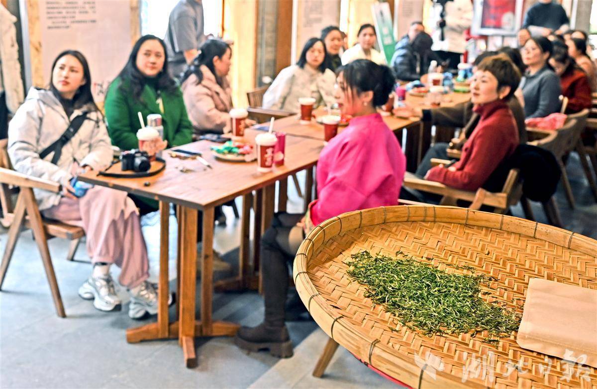 2月25日下午,宜昌城区二马路满意楼内热闹非凡,“炒茶吧!青年!”宜昌早春茶品鉴沙龙活动在此火热开展。活动现场,宜昌制茶艺人与市民亲密互动,展示传统非遗制茶技艺,吸引了众多青年,参与者尽情品尝早春茶的鲜爽韵味,感受新茶的独特魅力。宜昌早春茶较其他茶产区提前约15天上市,这得益于三峡库区优越的地理气候环境。特殊的山水条件形成了独特的小气候,使得茶树能够更早地萌发新芽,孕育出品质上乘的早春茶。活动不仅让青年群体近距离接触到传统制茶工艺,还以新颖的形式将传统文化与潮流元素相融合,为弘扬宜昌茶文化、推广宜昌早春茶品牌起到了积极作用。(湖北日报全媒记者 刘曙松 摄)