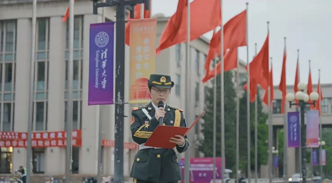 薛晗在清华大学113周年校庆日升国旗仪式中作国旗下的演讲
