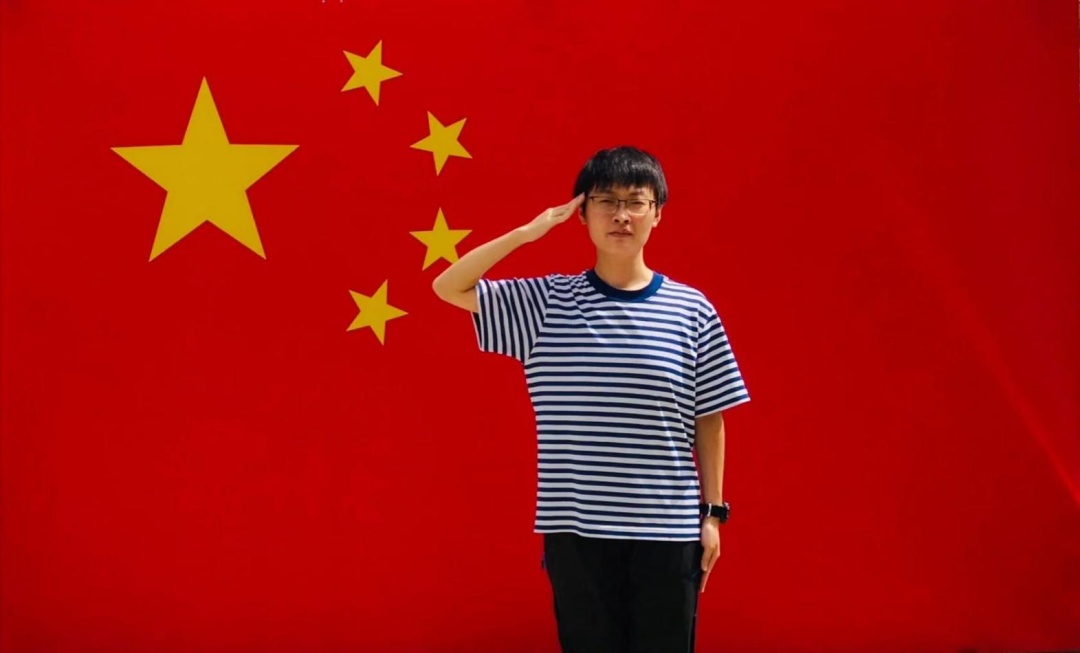 薛晗与国旗合影