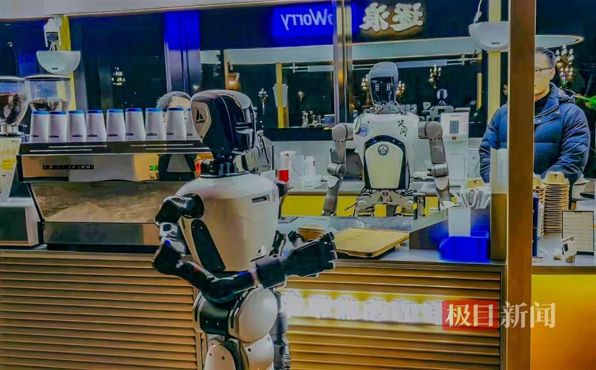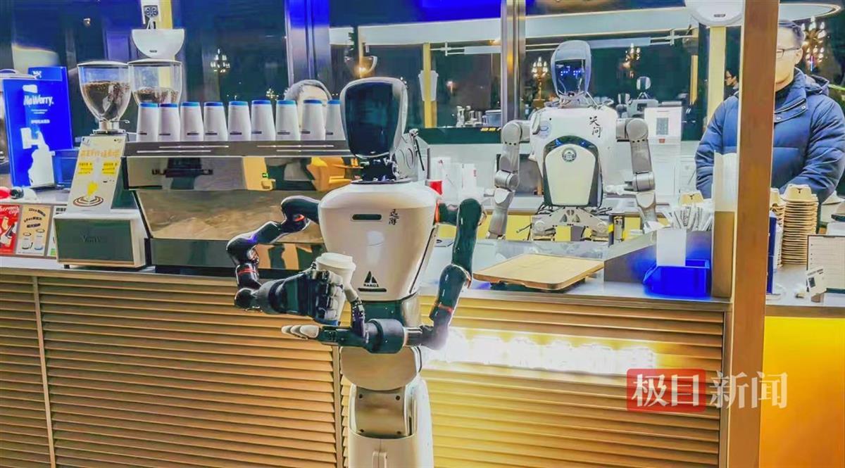2月25日,两台武汉人形机器人“天问”,在武汉“NOWORRY COFFEE”光谷店内自行为顾客服务,引起不小的轰动。