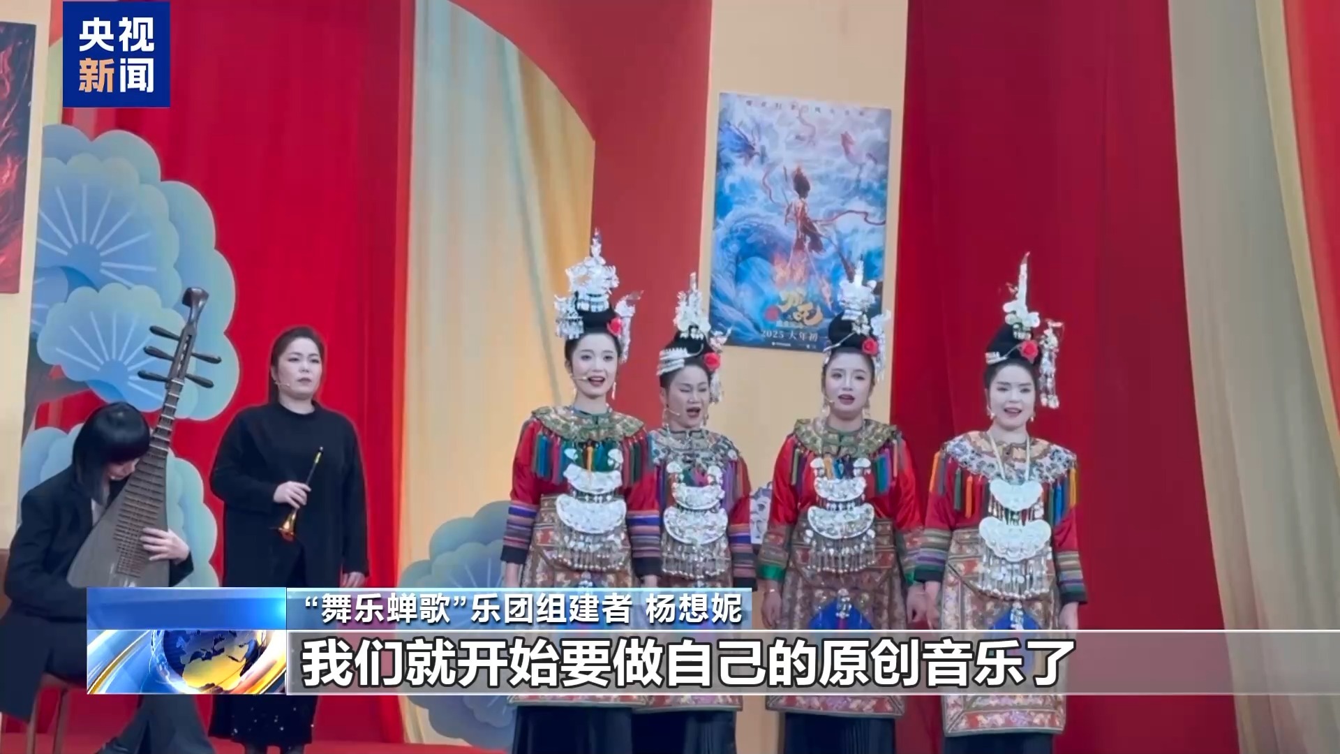 “舞月蝉歌”乐团组建者 杨想妮:演出的话,我非常希望能够出去。但是做自己的本民族文化,还是会在侗寨,还是会在村里面,根还是不能变。《哪吒2》过去以后,我们就开始要做自己的原创音乐了。我想通过创新的方式,唤醒大家的血脉觉醒。能够让寨子里面的年轻人,不断去挖掘自己本民族的文化。