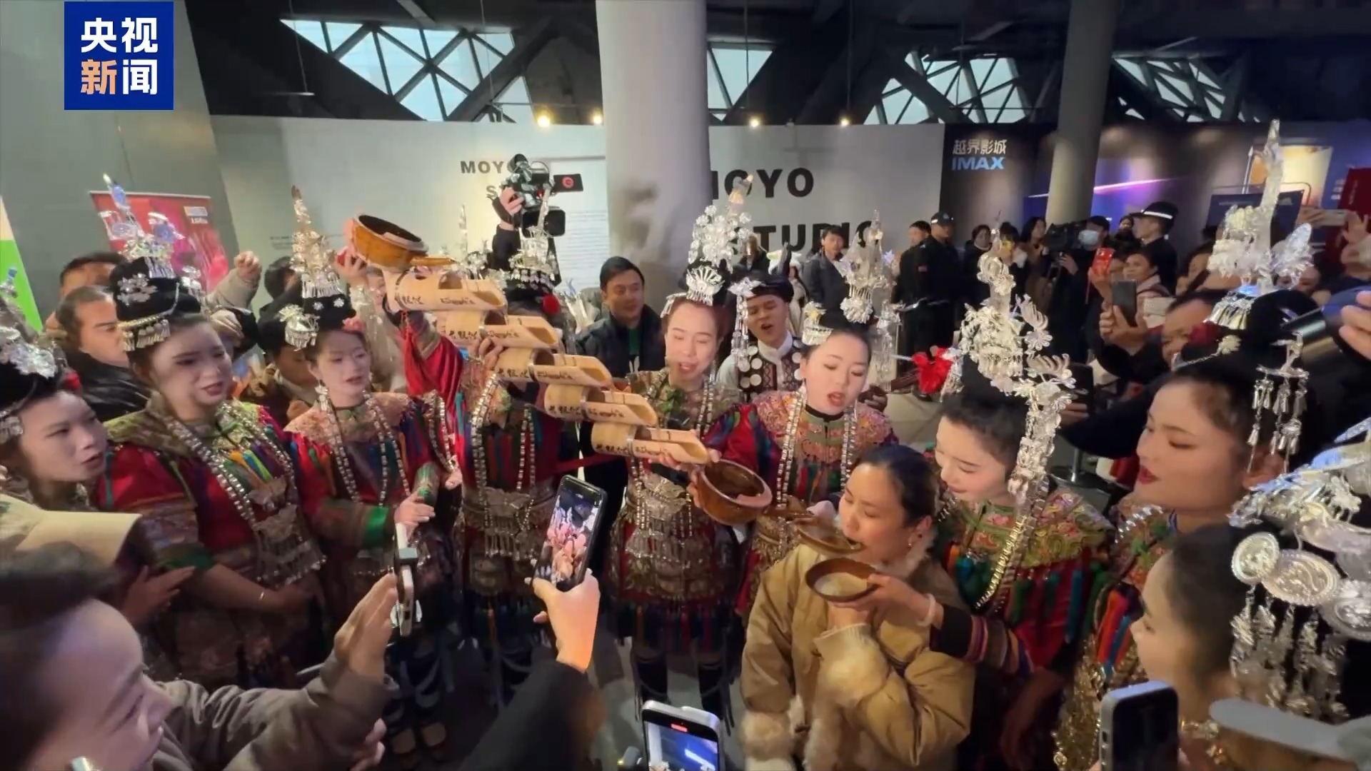 近日,春寒依旧冻人,但在贵阳的亚洲最大IMAX-GT影城门口,人气依然旺盛。这个影城已经连续多日登顶全国影院票房榜,而几位侗族姑娘的表演与互动,更是为这里添了一把火。