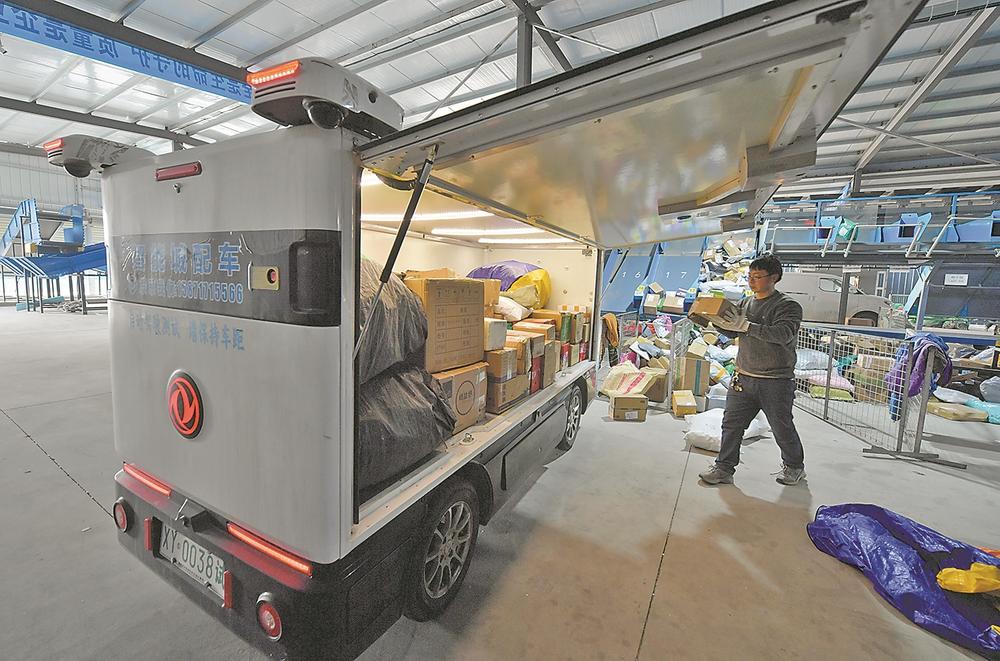 2月26日,位于襄城区尹集乡的襄阳佰悦通达物流有限公司内,满载包裹的无人配送车整装待发。该公司去年引进28辆低速功能型无人配送车,全年配送包裹量突破1000万件。该公司计划今年大幅增加无人配送车数量,助力智能配送进入千家万户。